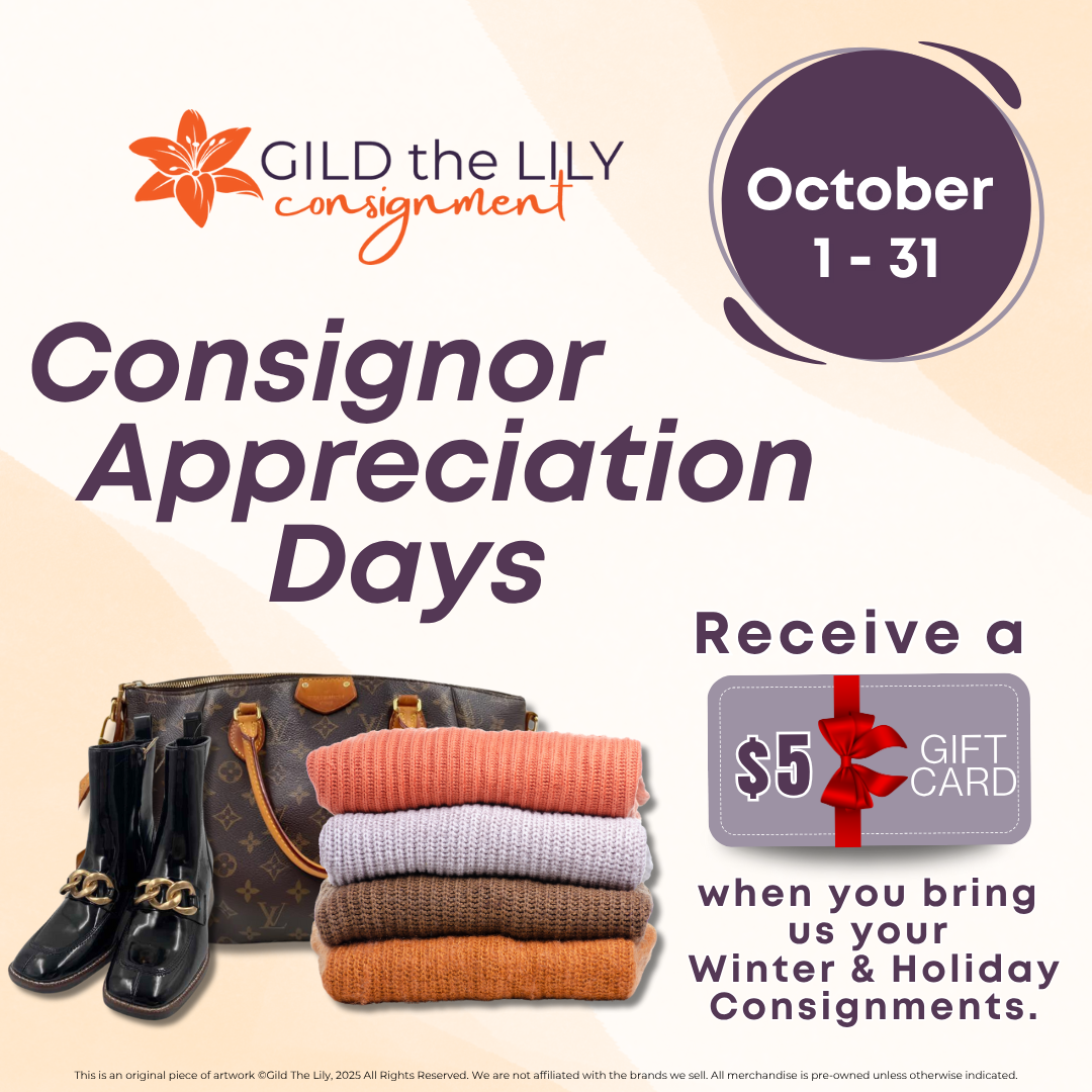 Gild the Lily Consignment Store is a unique consignment store specializing in high-end women's and men's clothing, shoes, and accessories. Our vision is to provide our customers with a one-of-a-kind shopping experience where they can find designer labels at a fraction of the cost. We offer a wide range of consignment items from top designers such as Tori Burch, American Eagle, Anthropologie, Banana Republic and many more. We also carry a variety of other items such as jewelry, handbags, and shoes.