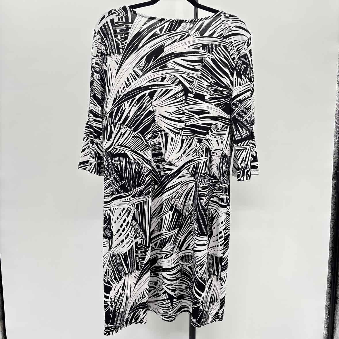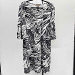 3/4 Sleeve, Black White Leaf Print Stretch Knit