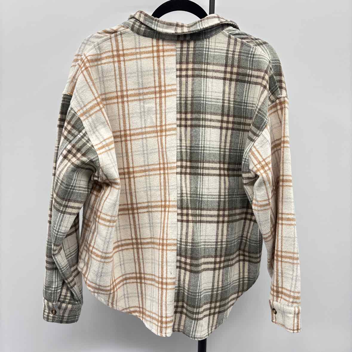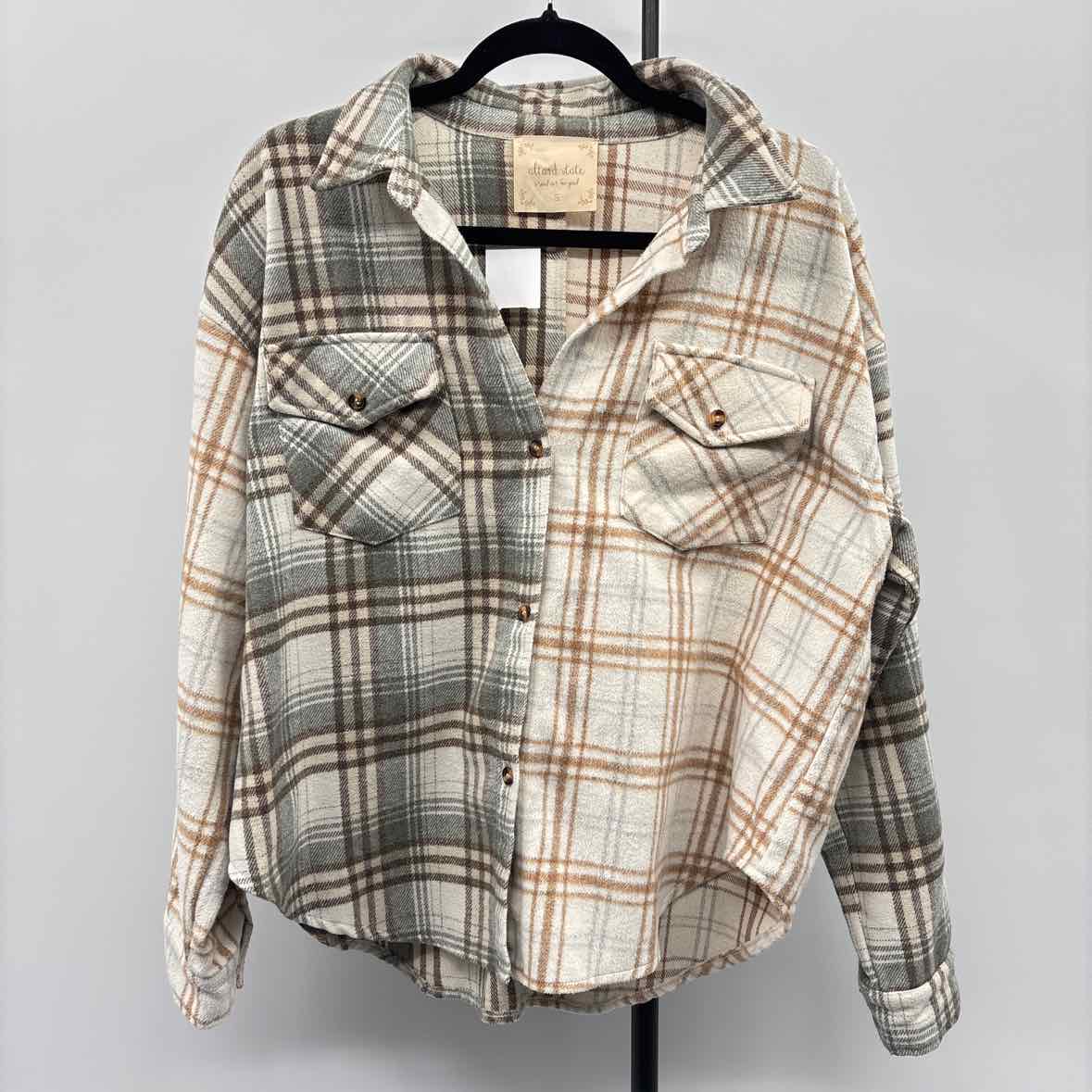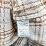LS Ivory Gray Brown Tan Plaid, Button Front