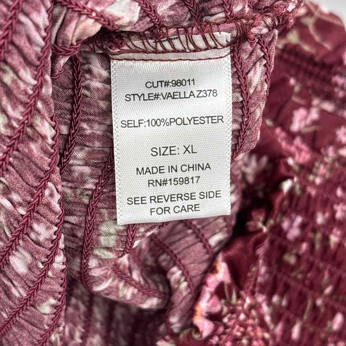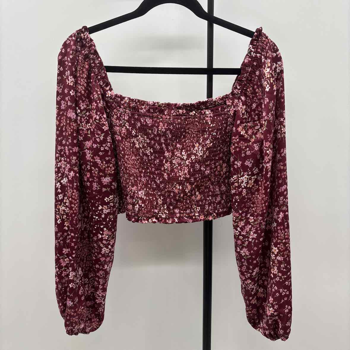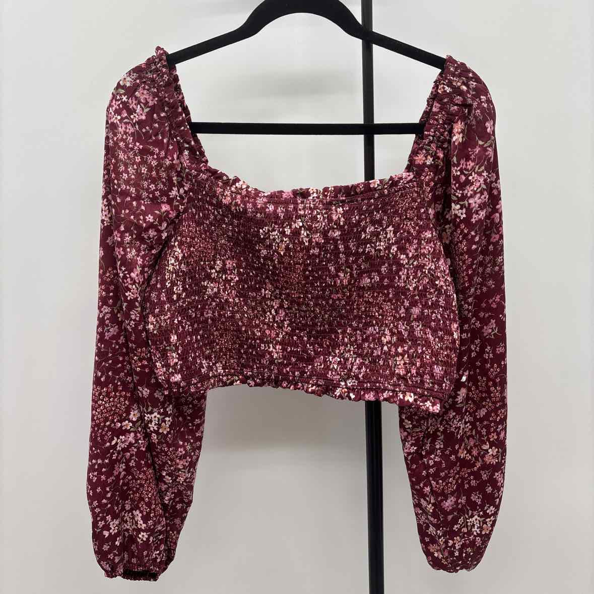 LS Maroon Pink Green Floral Square Neckline Smocked Bodice