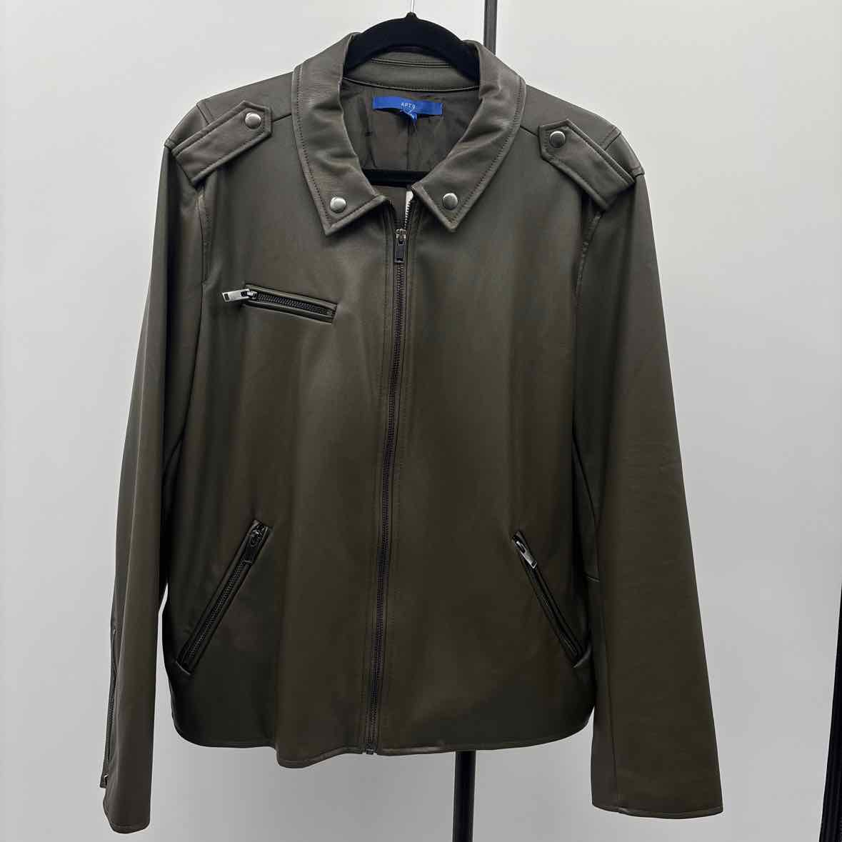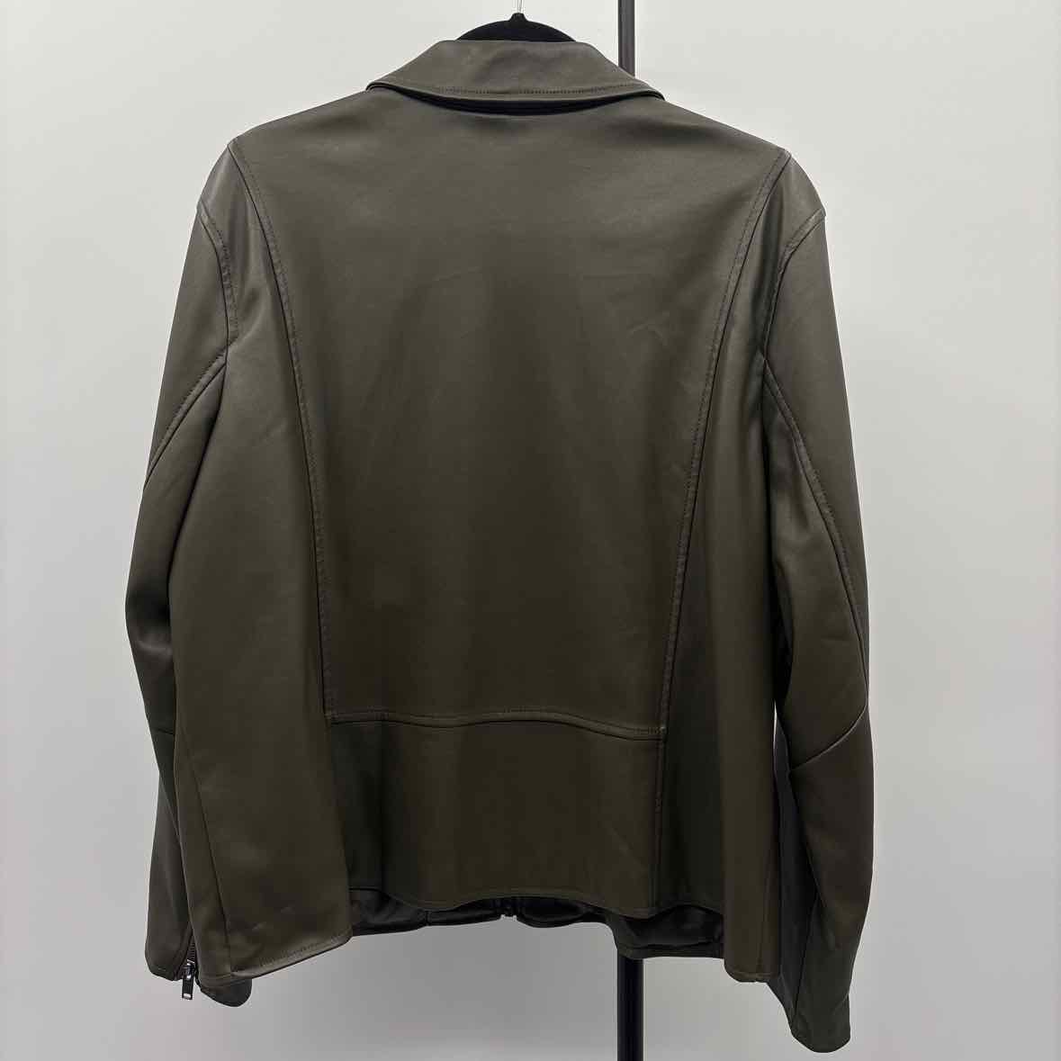 olive faux leather zip up jacket w/ pockets