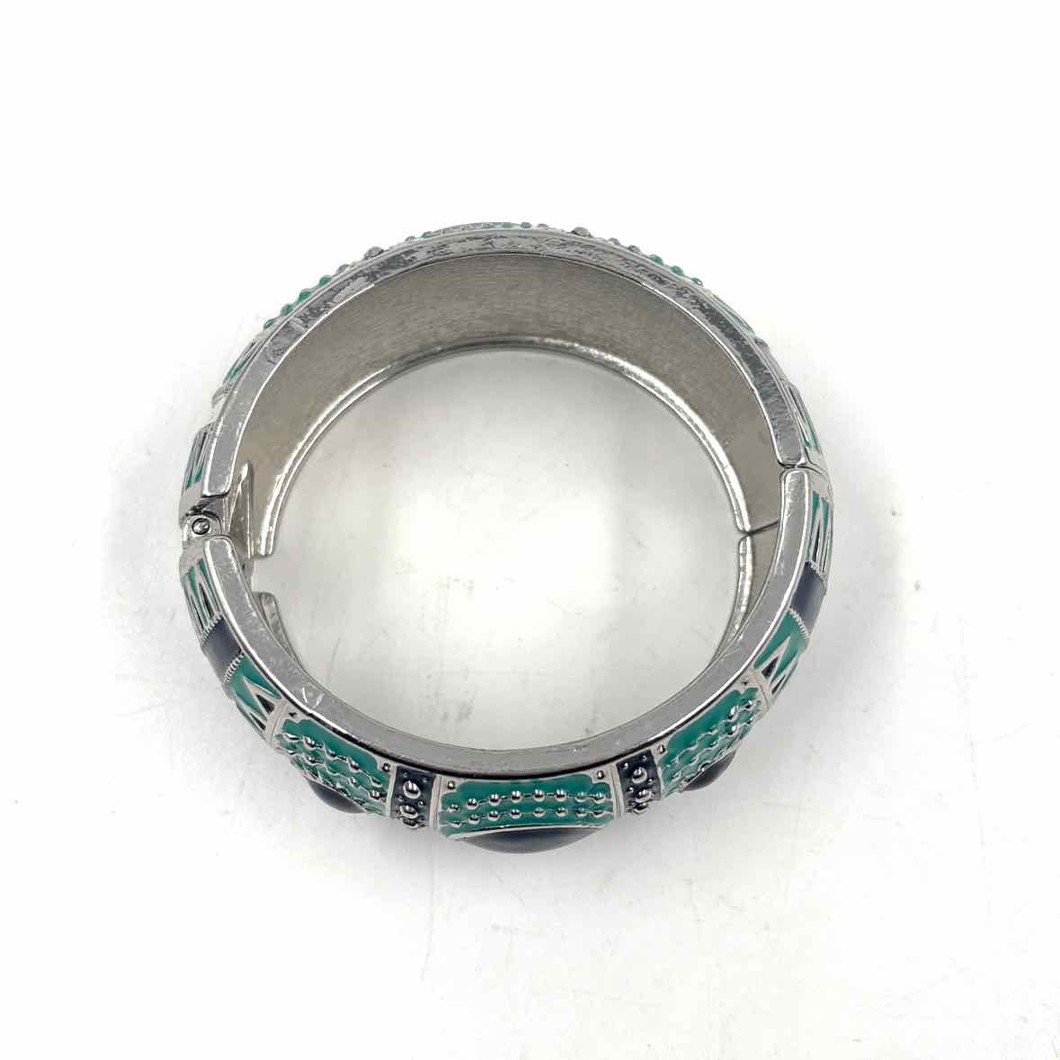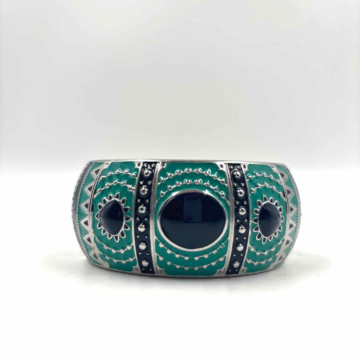 Silver-Toned Bangle, Aztec Style w/ Teal and Dark Blue Colors