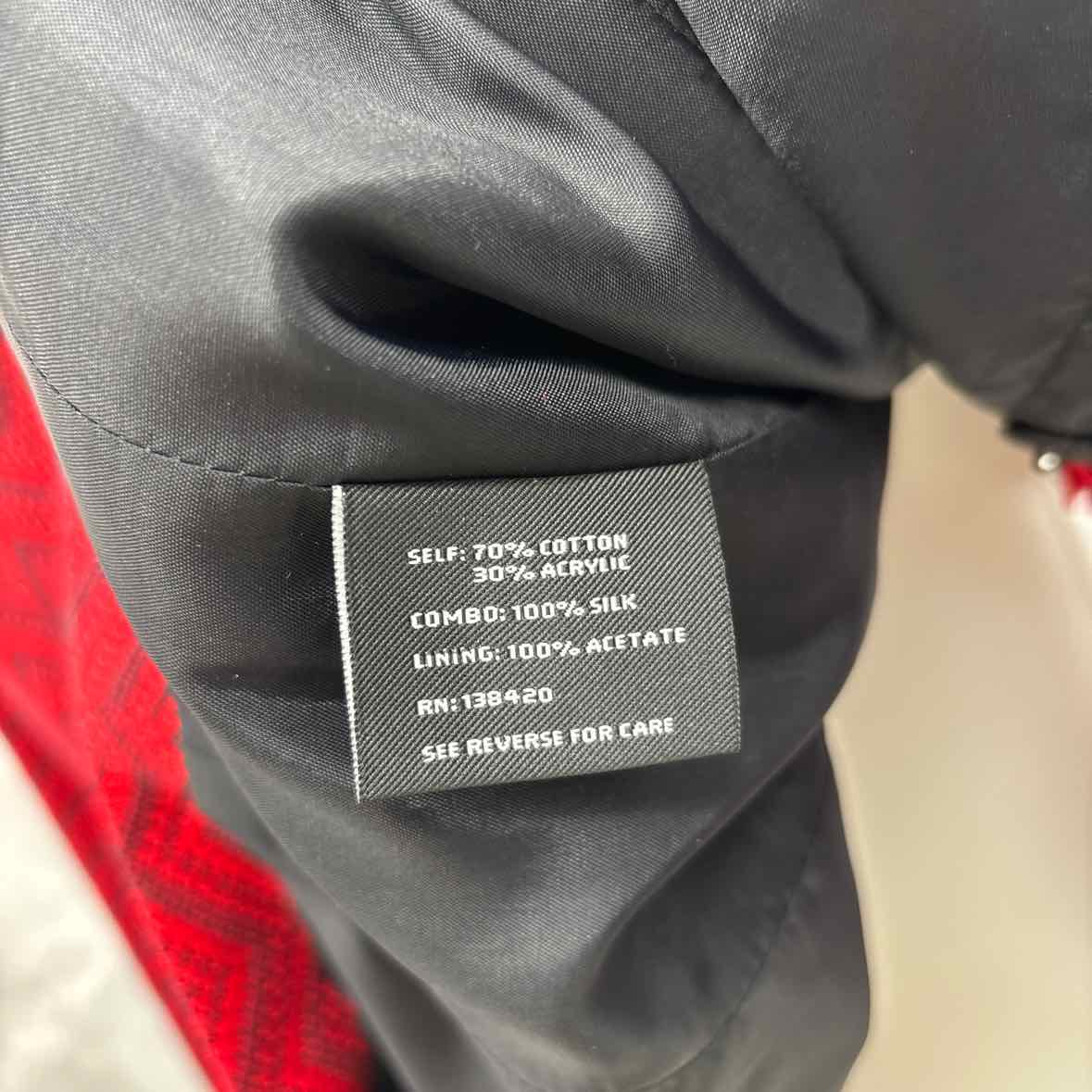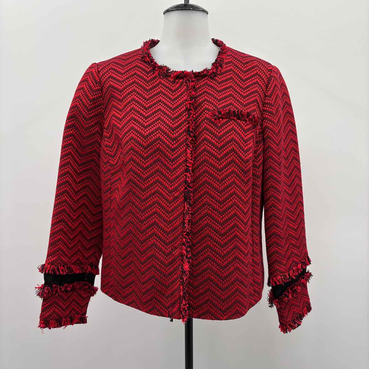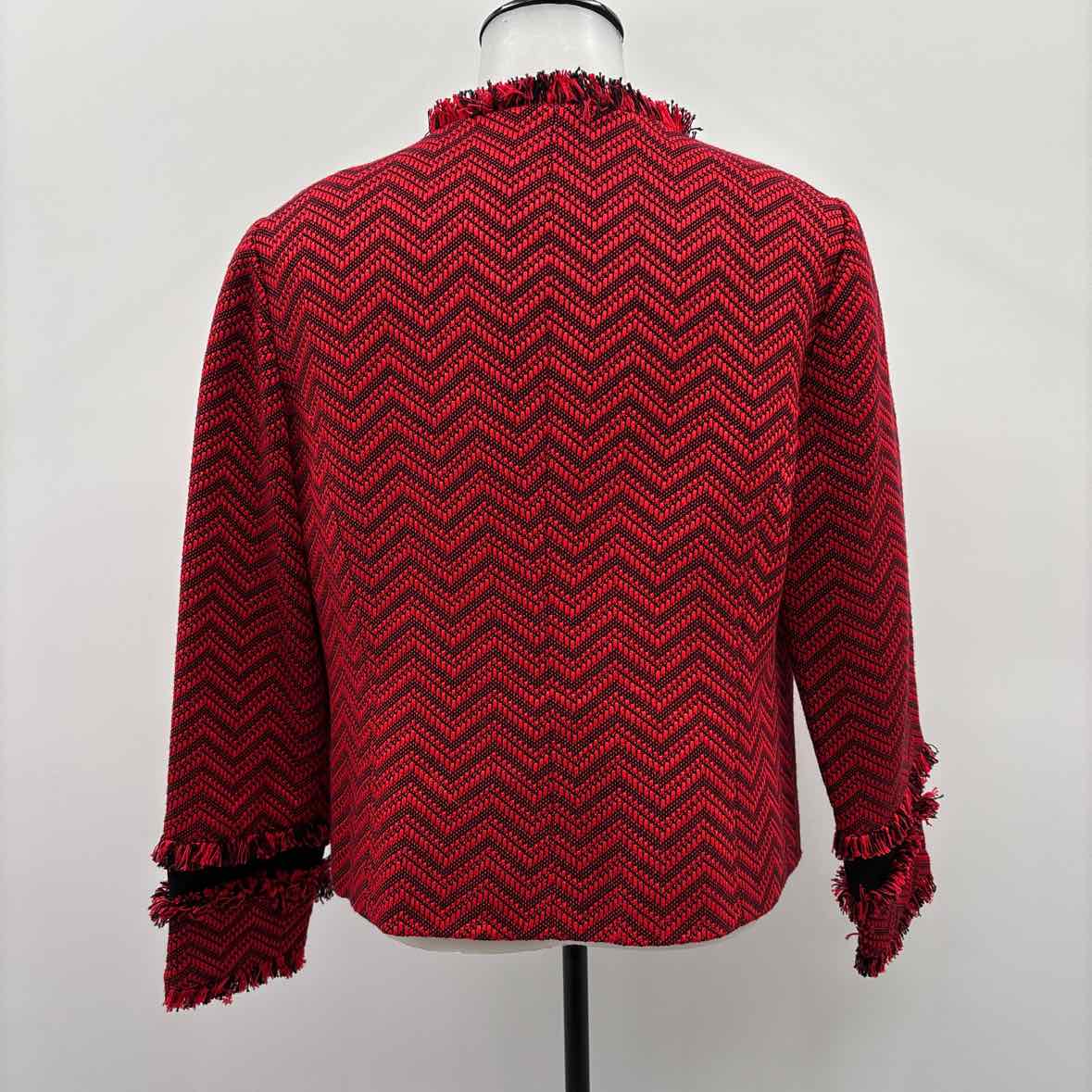 red/black zigzag snap button jacket top w/ fraying