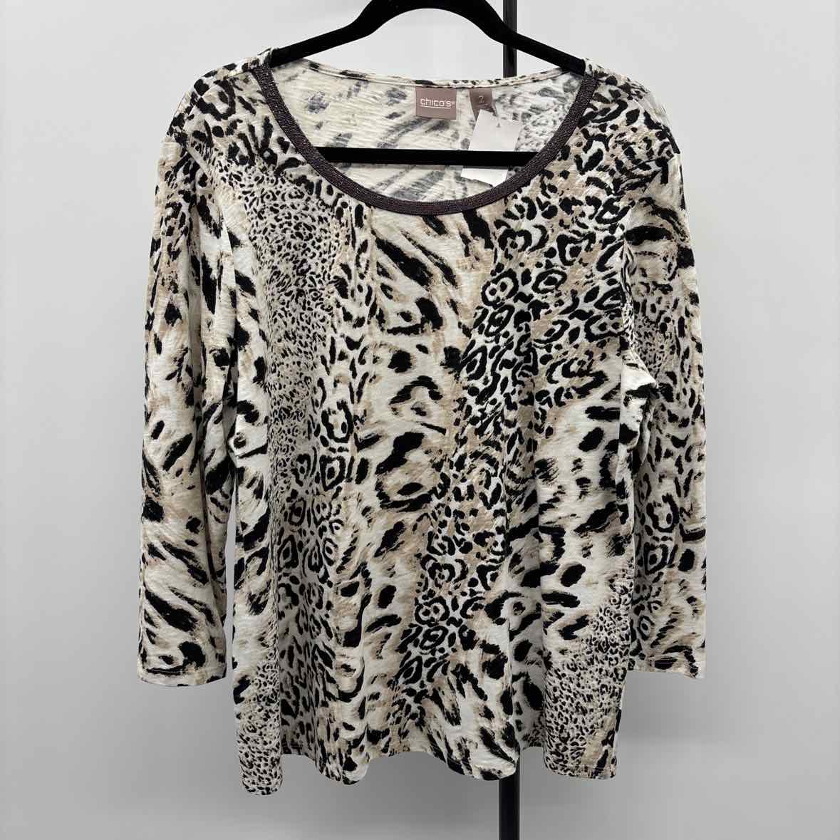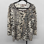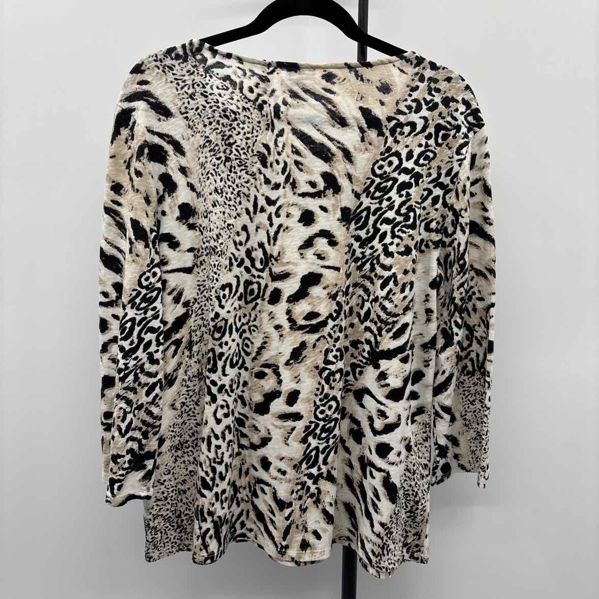 LS Black White Tan Animal Print, Shimmer Neckline