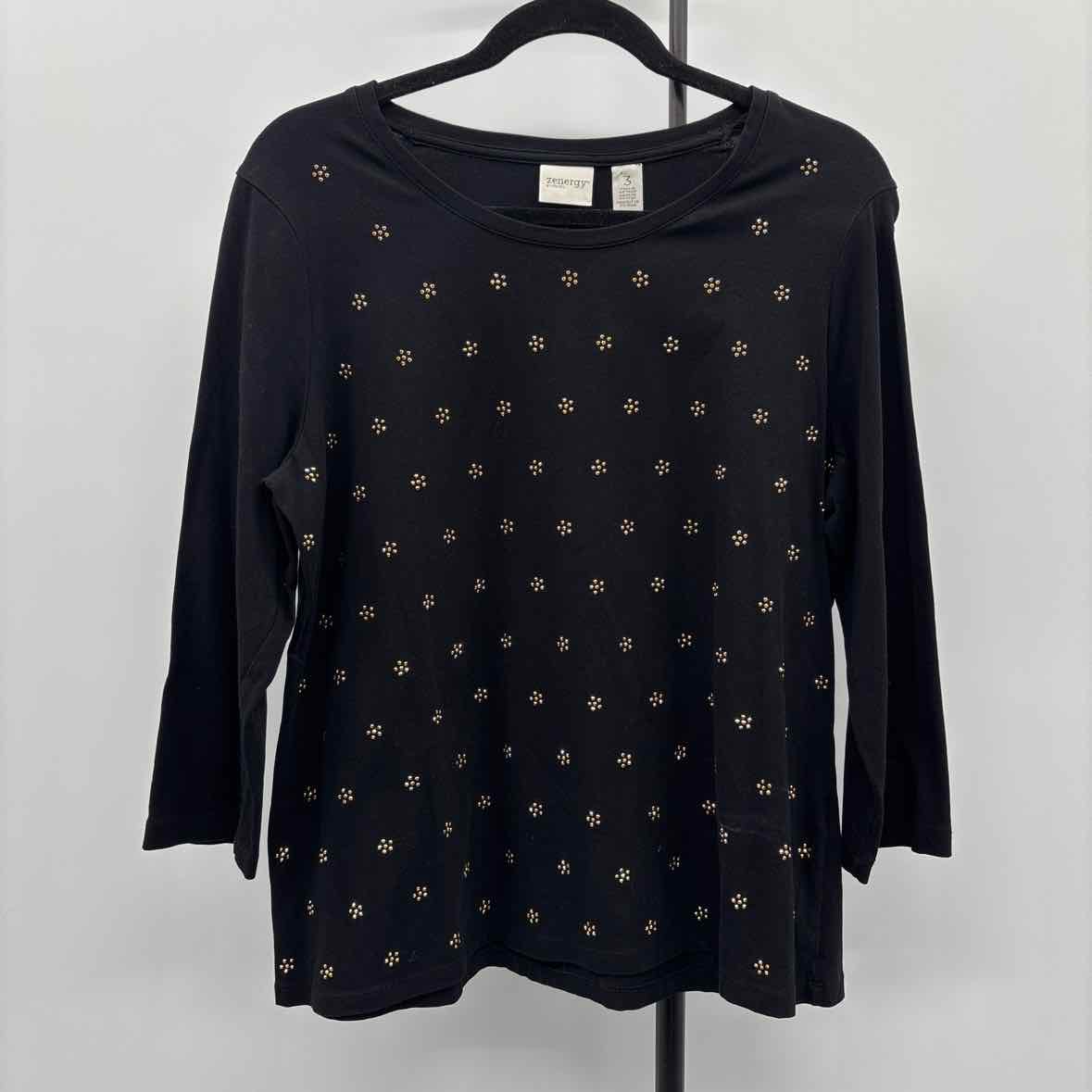 3/4 Sleeve Black Knit, Copper Metallic Beaded Front