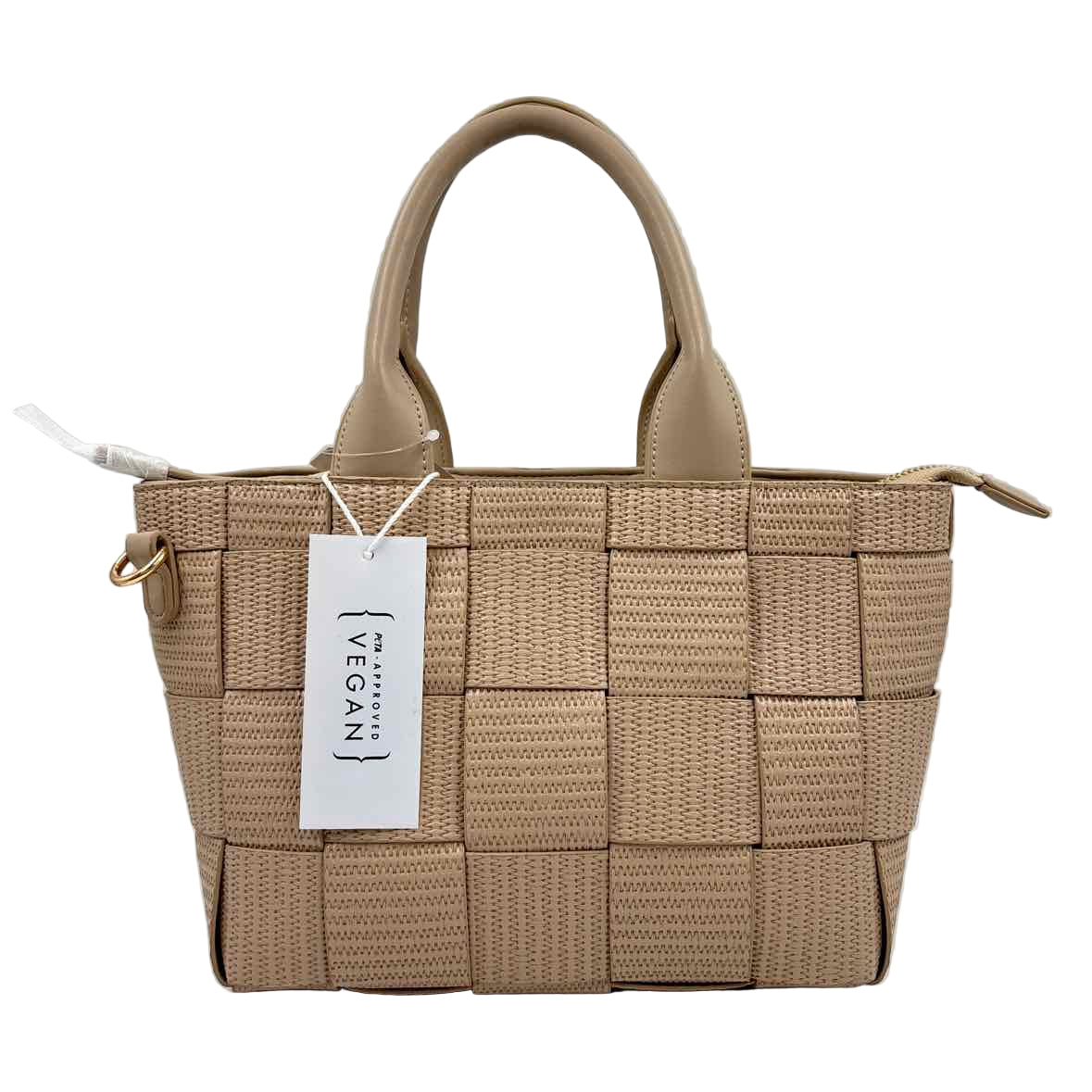 NWT ECOSTITCH Tan Woven Handled Satchel w/Optional Crossbody Strap