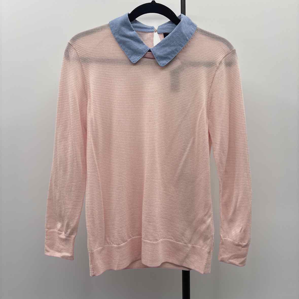 pink/white striped wool shirt w/ blue collar