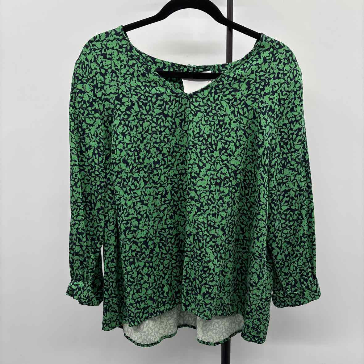 JJill Women's Size MP Green Floral Long Sleeve Shirt
