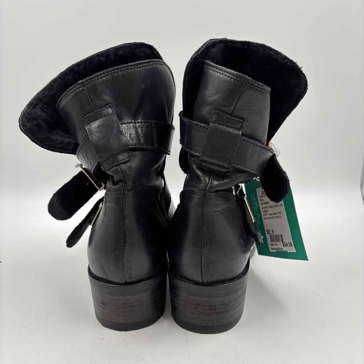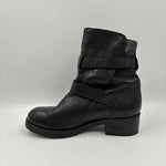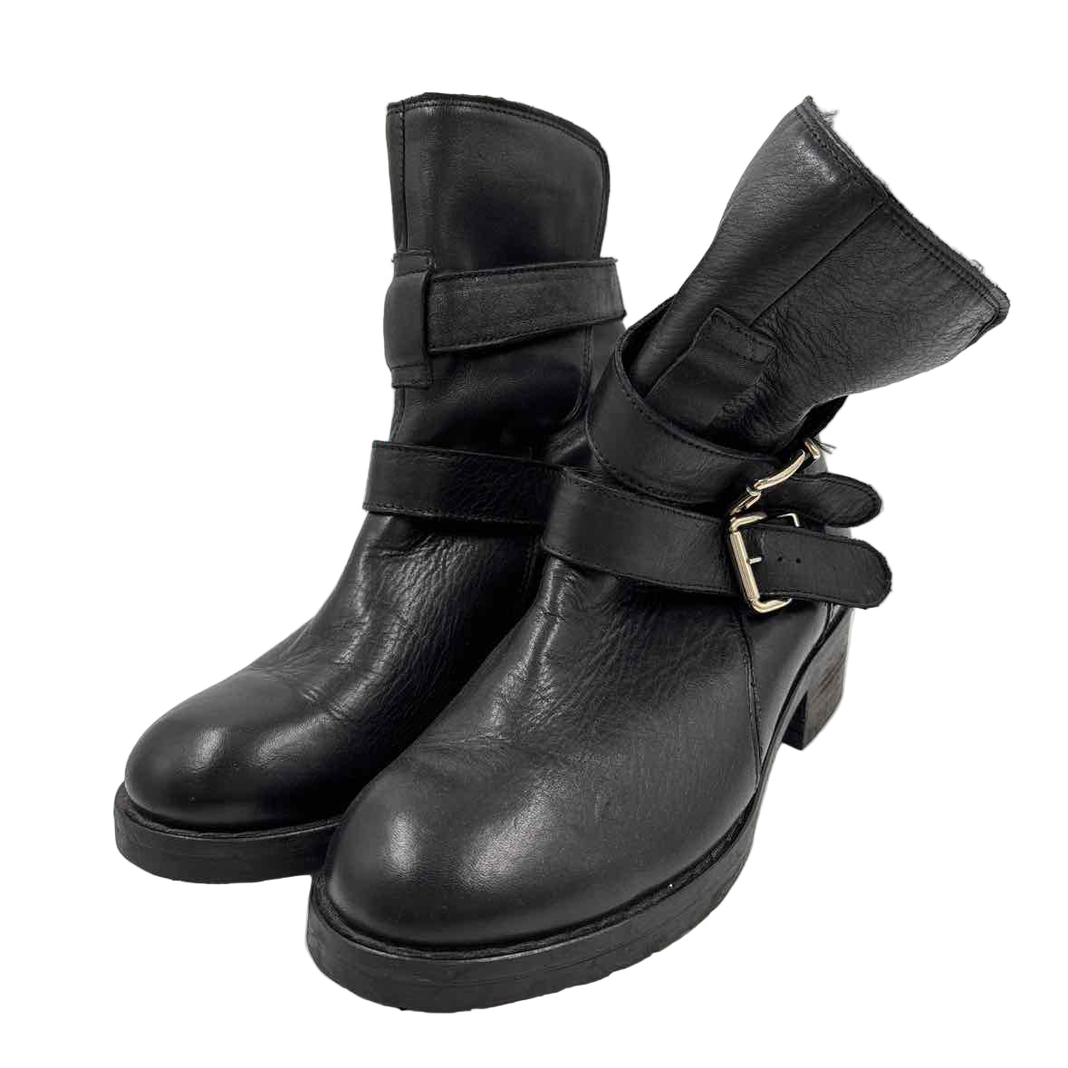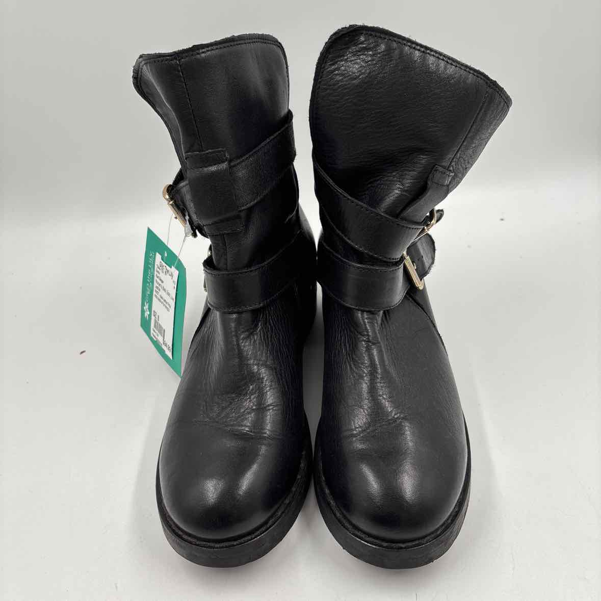 NWOT - black leather PAM moto boots w/ fur lining & double silver buckles