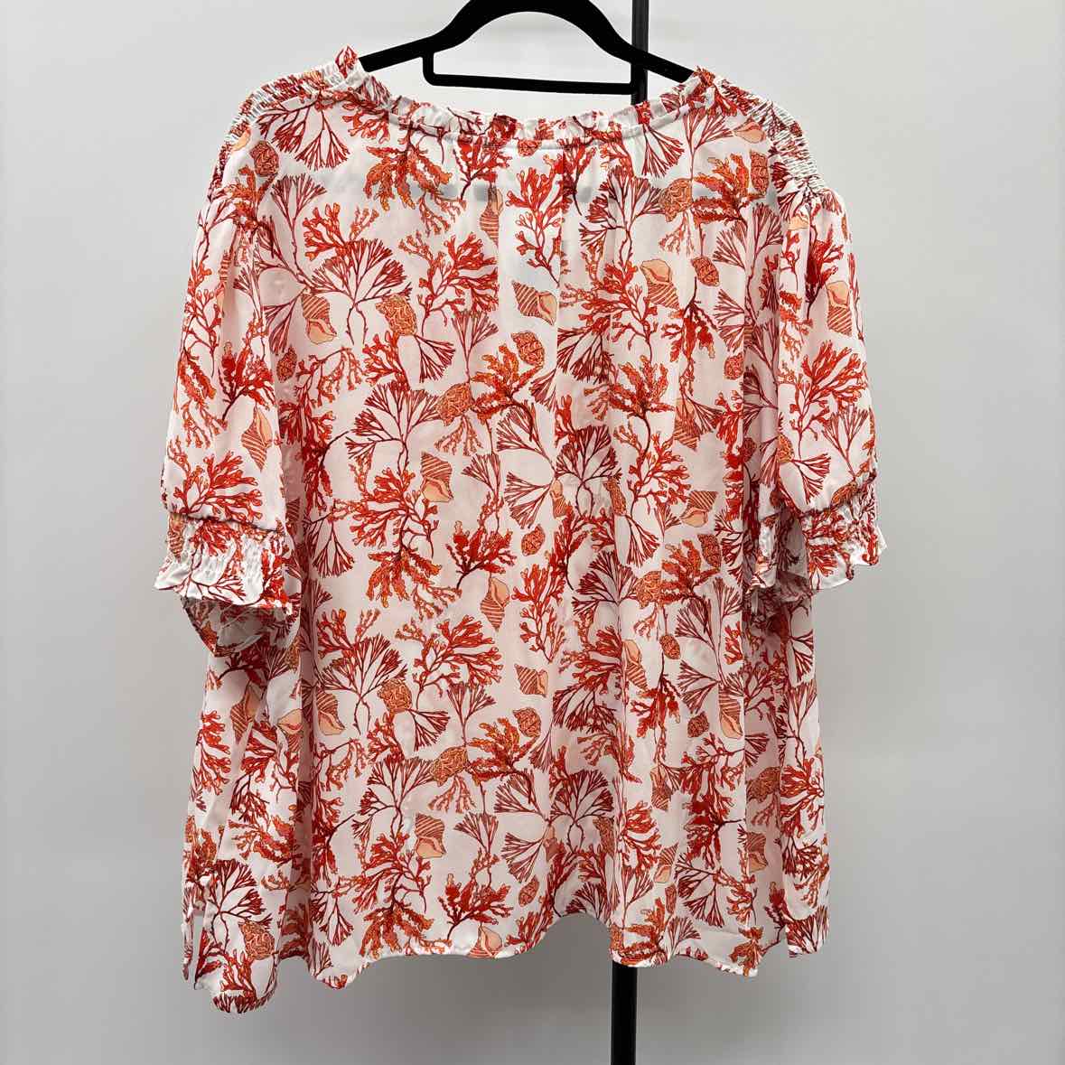 SS White Burnt Orange Sea Shells & Coral, V-Neck w/Button Detail