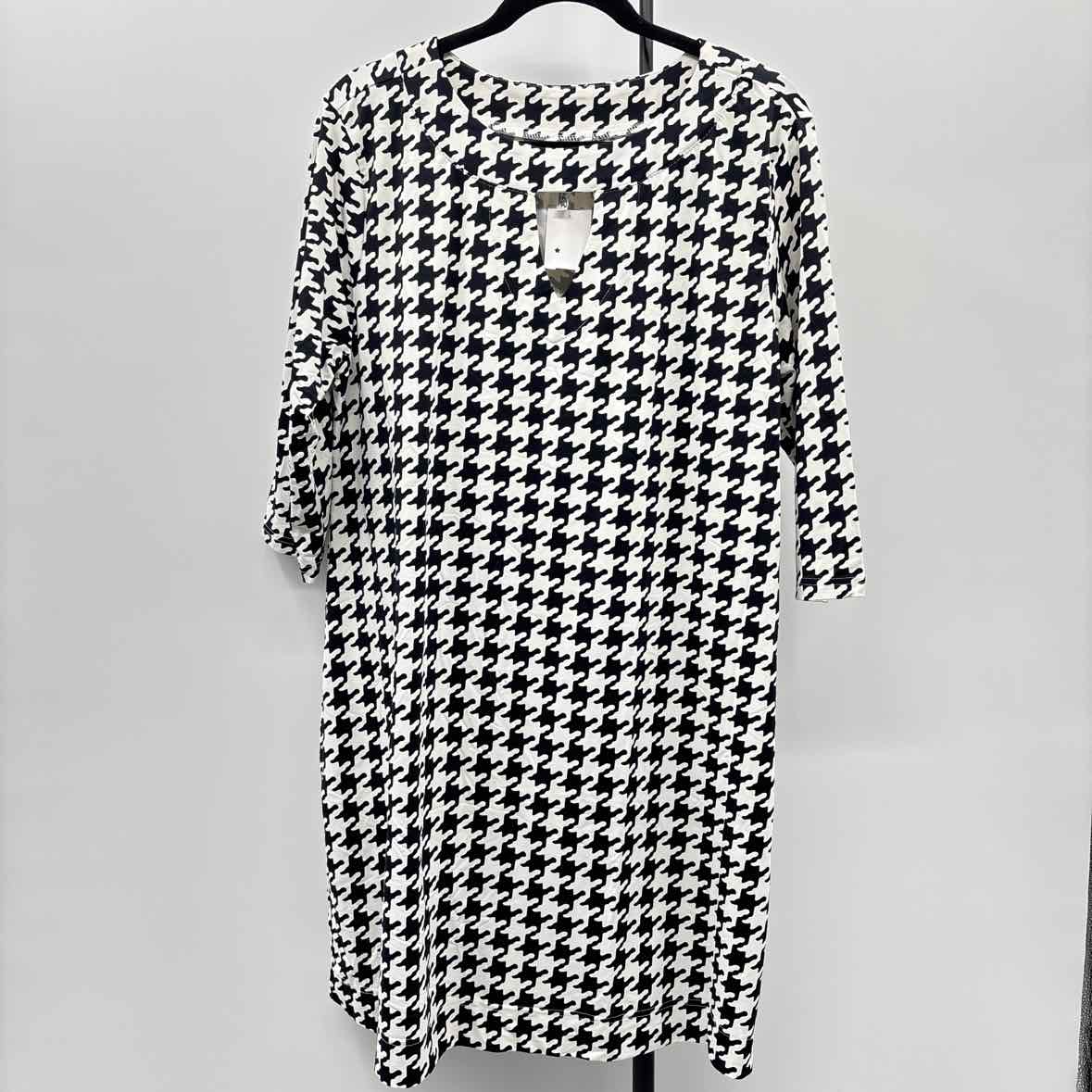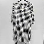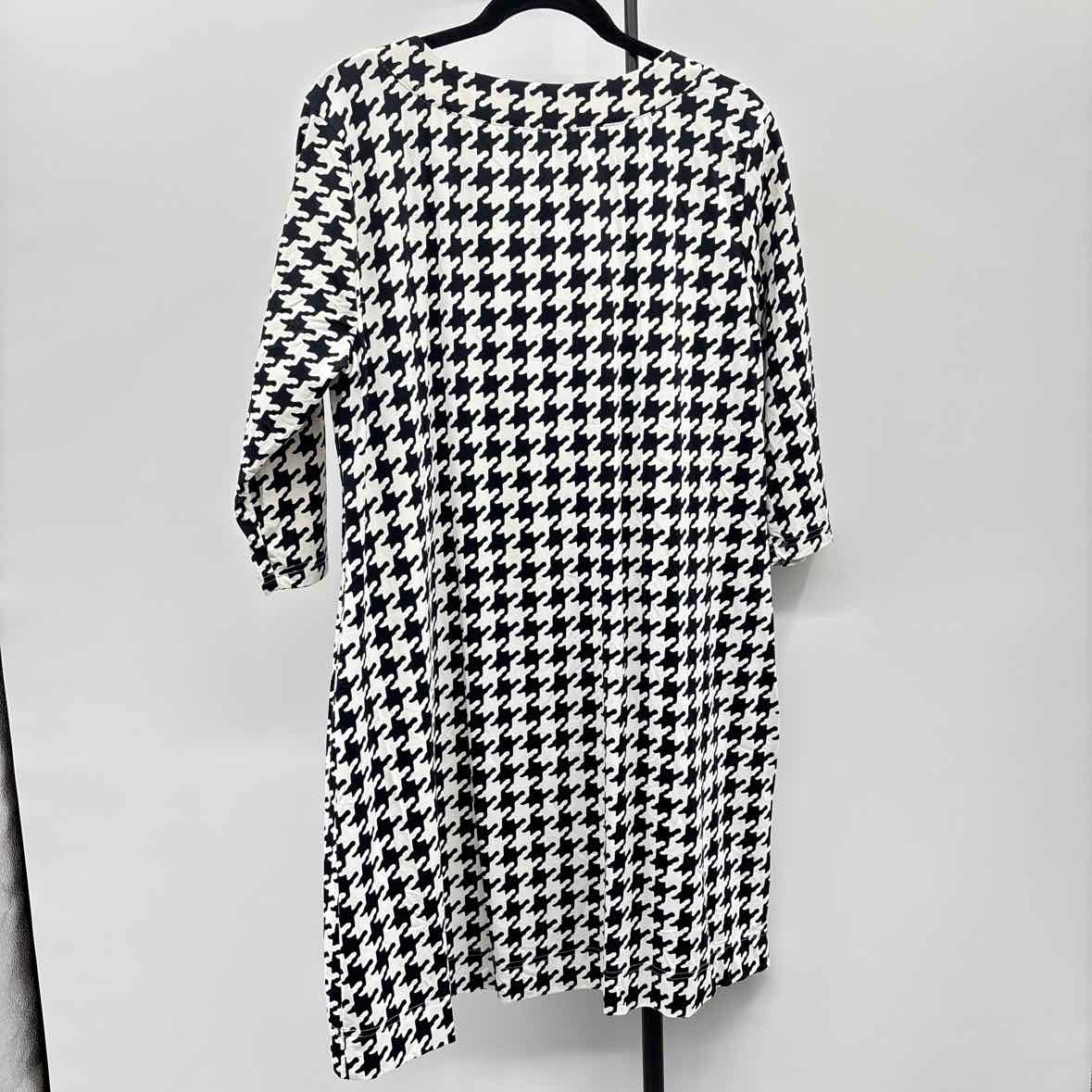 3/4 Sleeve Black White Houndstooth, Open V-Neck Detail
