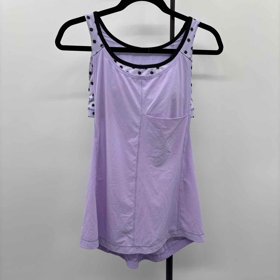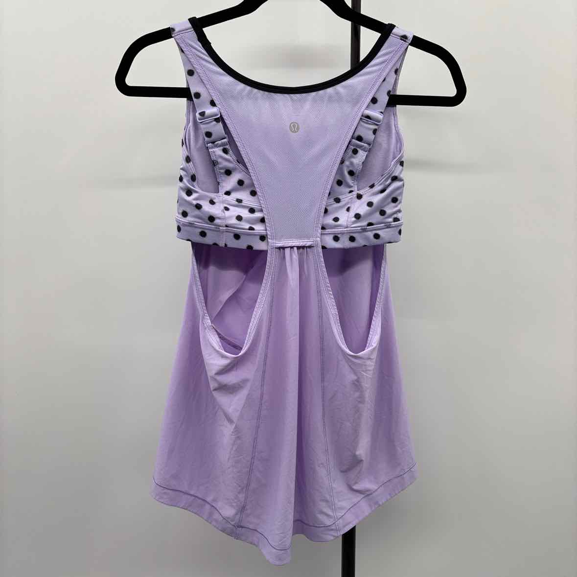 purple tank w/ built-in black-dotted sports bra