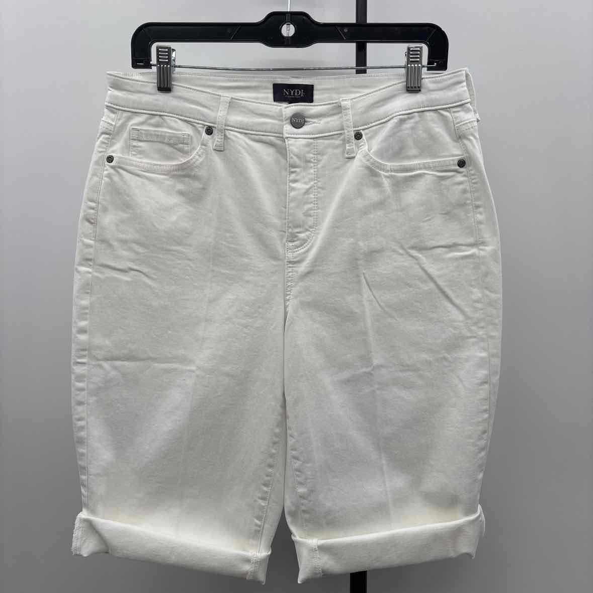 White Stretch Denim, Button Zip Front, Bermuda Length