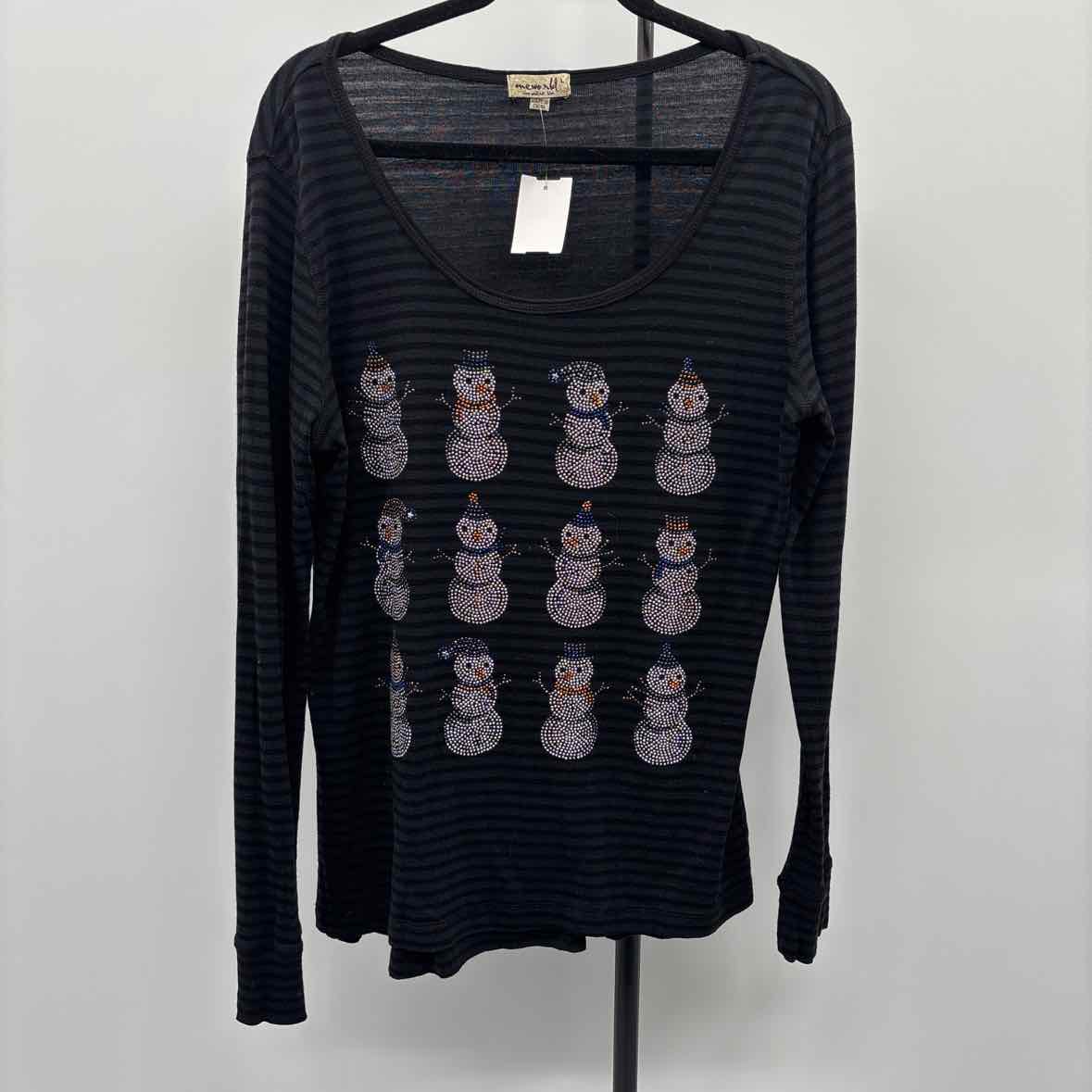 black/charcoal striped shirt w/ gem snowmen