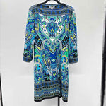 LS Royal Blue Green White Paisley Stretch Knit