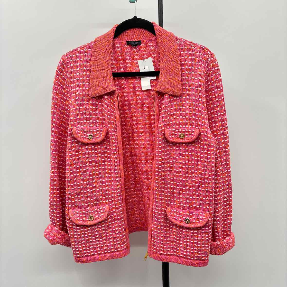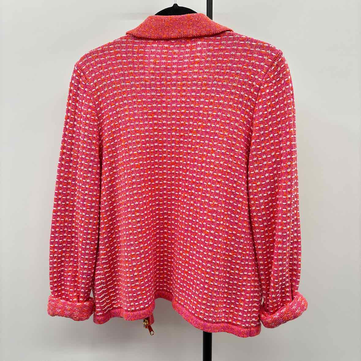 LS Textured Pink Orange White, Zip Front, Gold Button Pockets