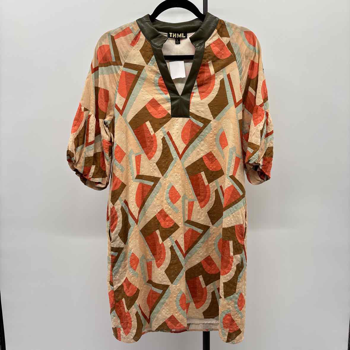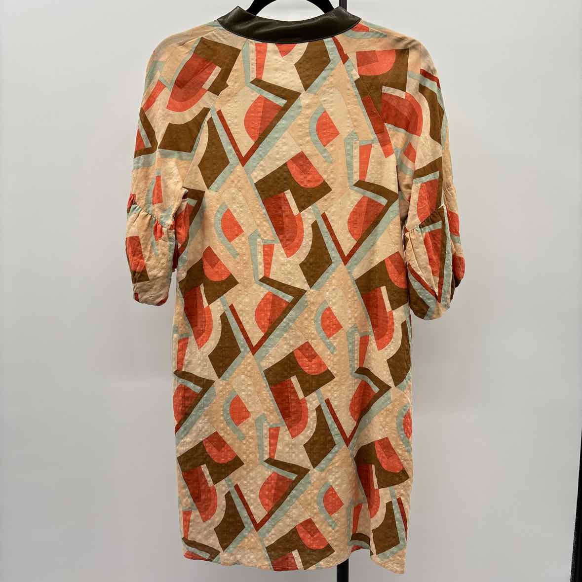 1/2 Sleeve Orange Brown Green, Vegan Leather Neckline, Pockets