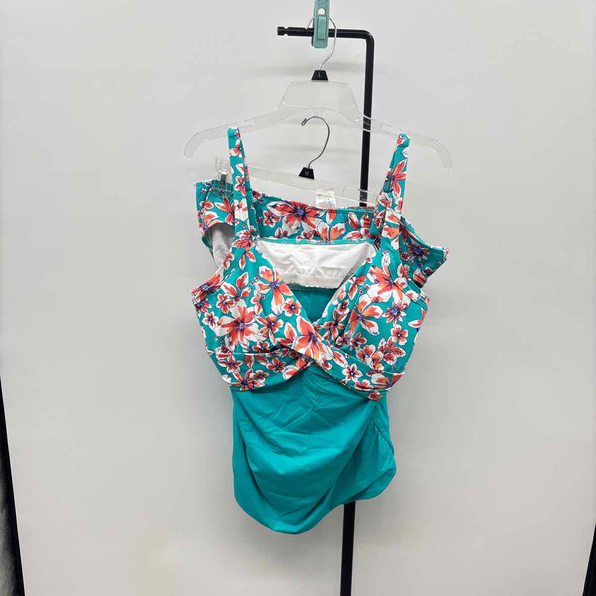 TANKINI, Teal Peach White Floral, Adjustable Back