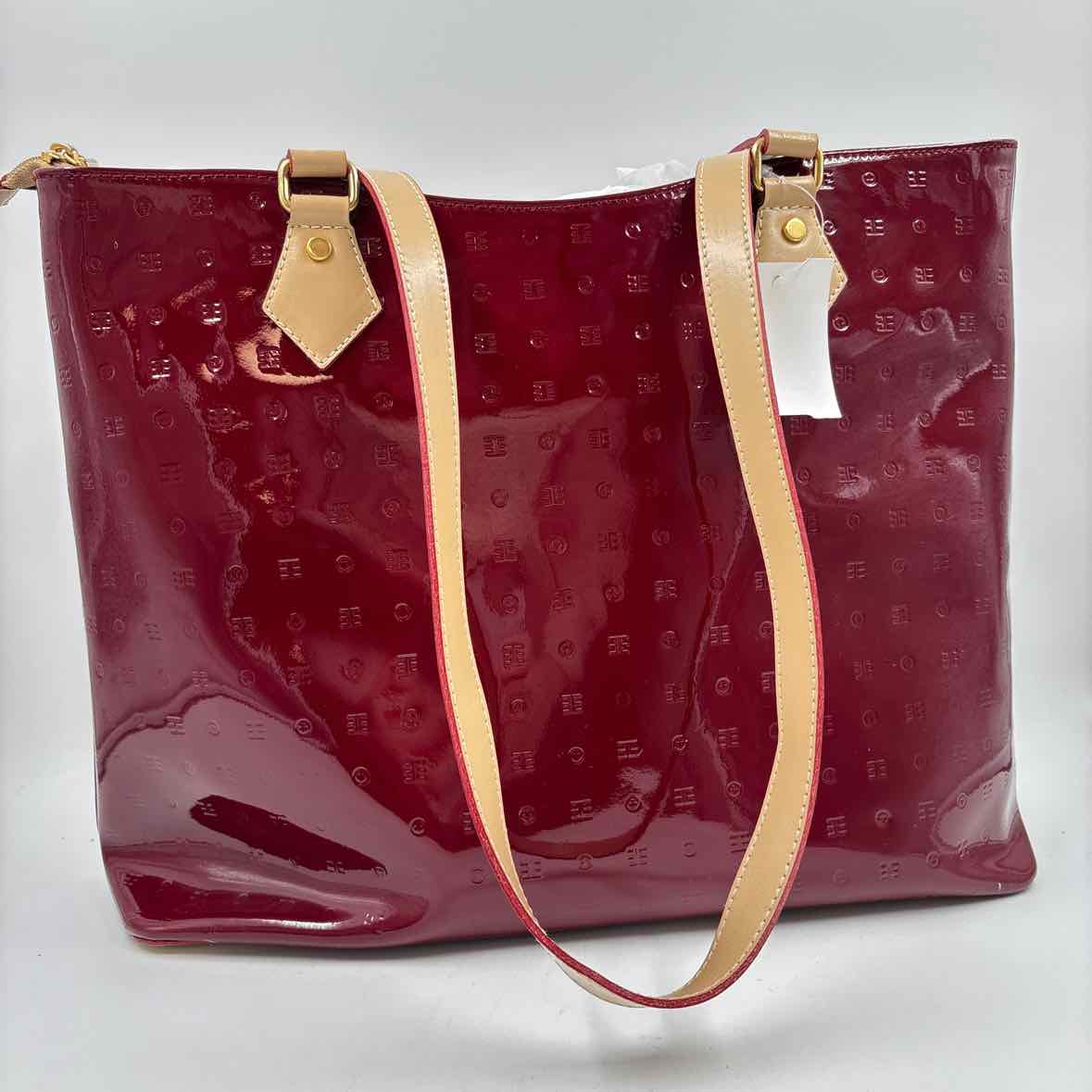 Embossed Maroon Patent Leather Tote, Zip Closure