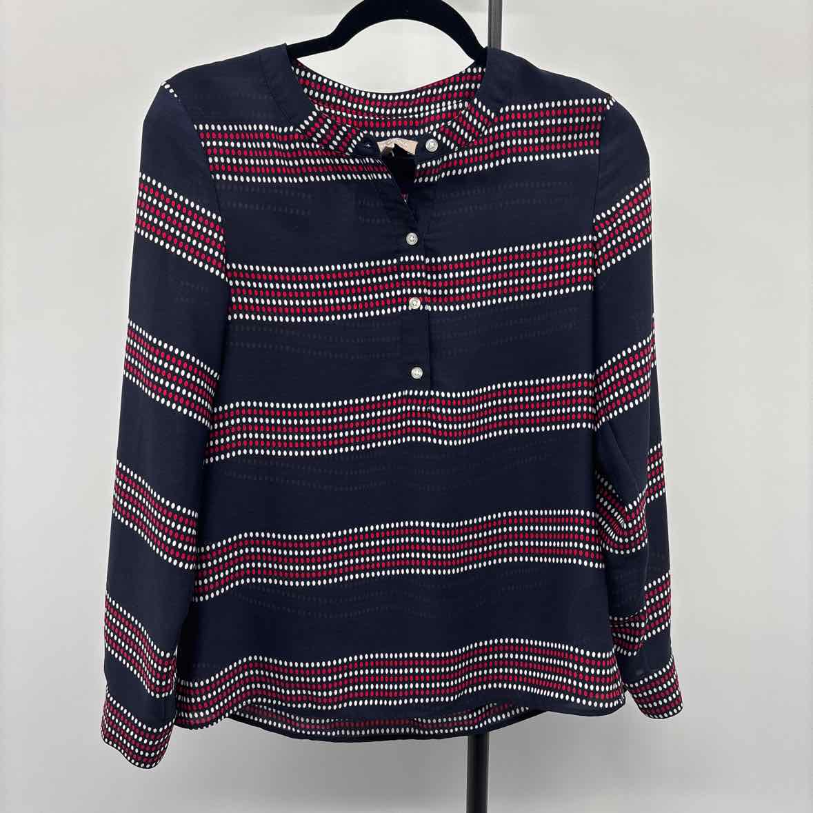 LS Navy Blue Red White Dotted Stripes, 1/2 Button Front