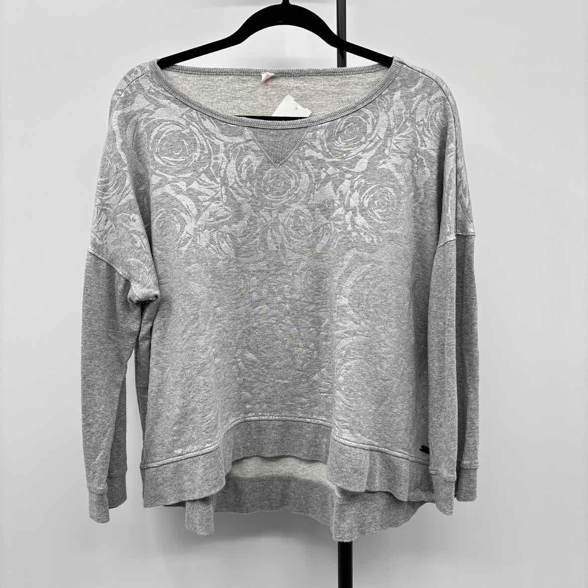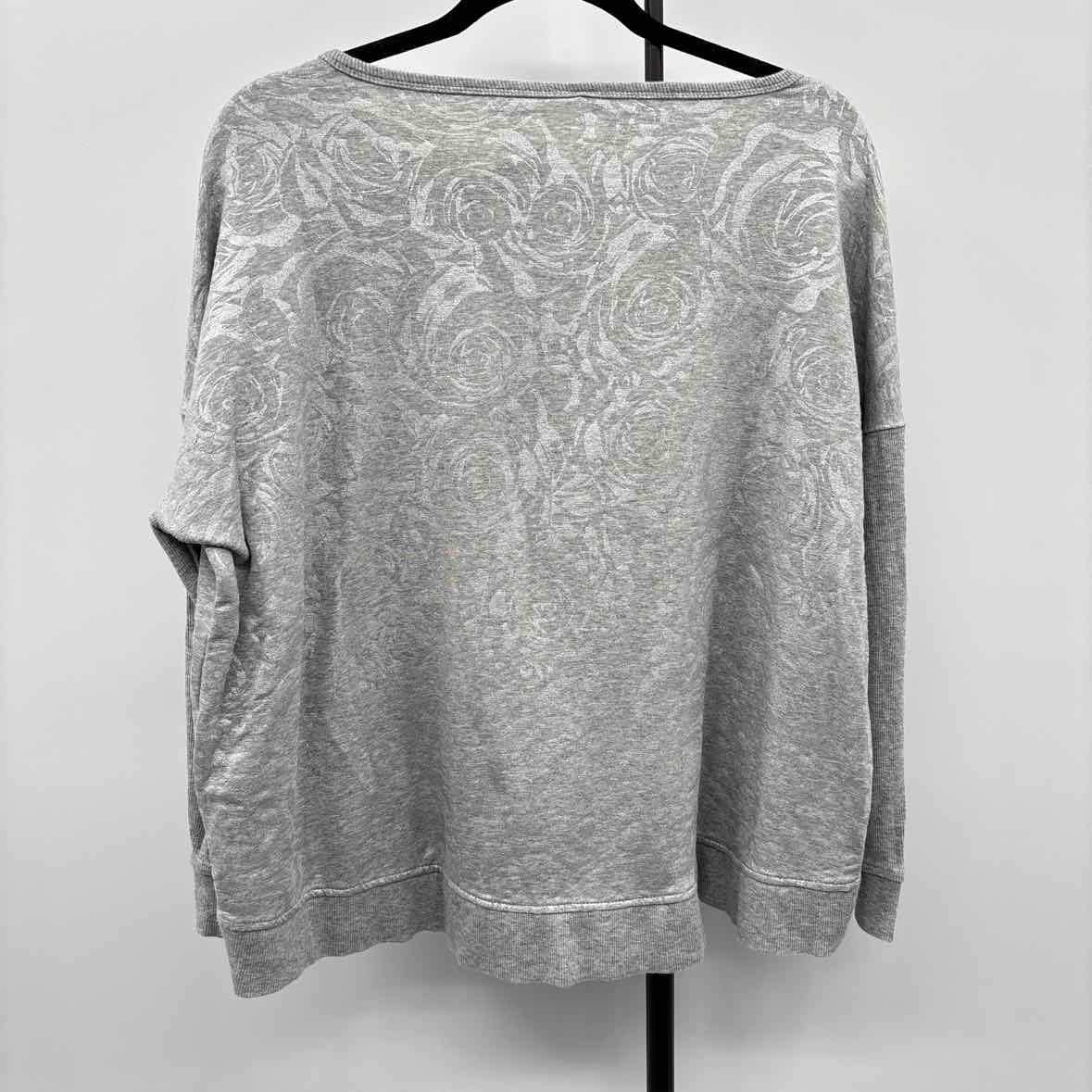 LS Gray Floral, Ribbed Sleeves, Crew Neck