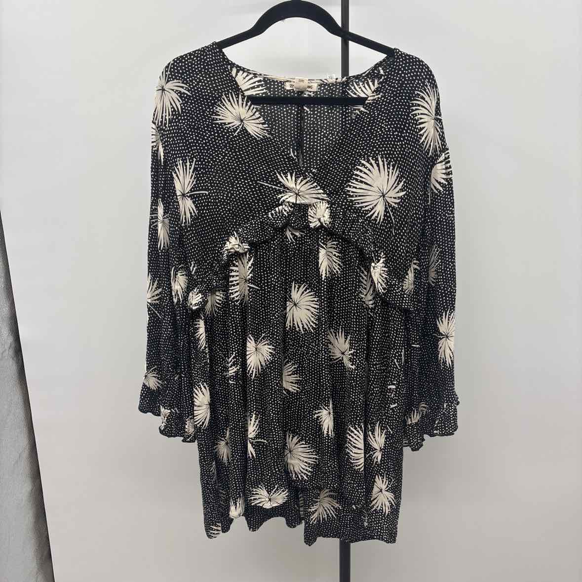 LS Black Ivory Leaf Dotted Print, V-Neck
