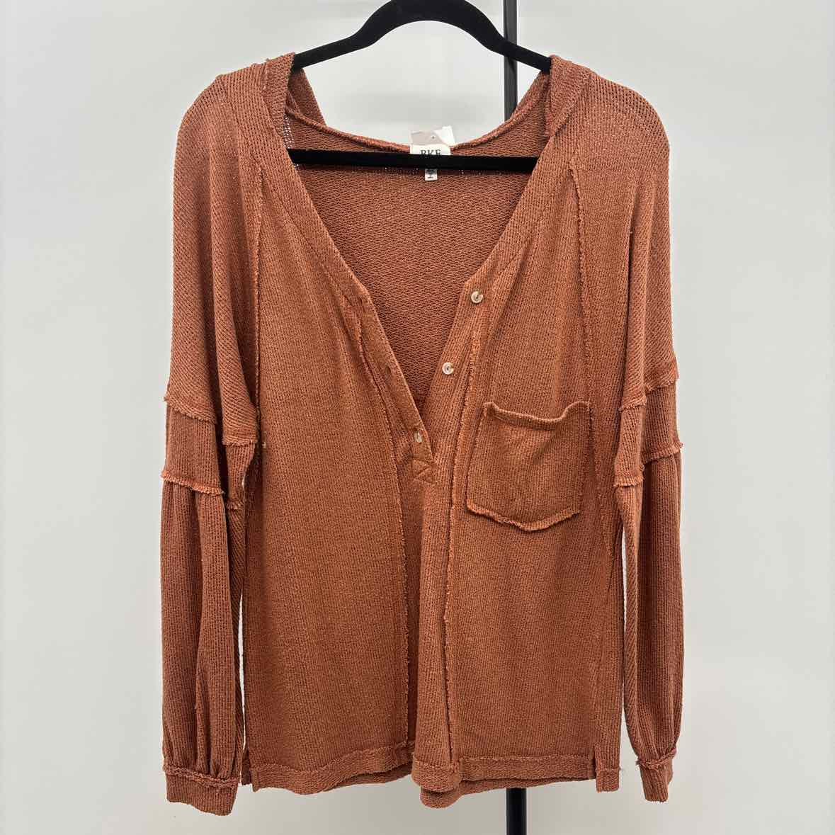 LS Textured Brown,V-Neck w/Button Detail, Hood