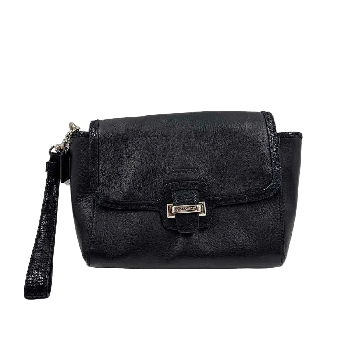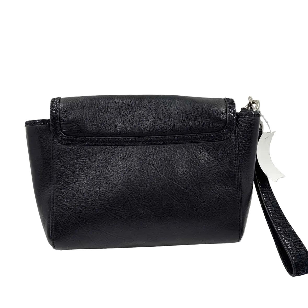 Black Leather, Clutch Style, Snap Closure, Wrist Strap