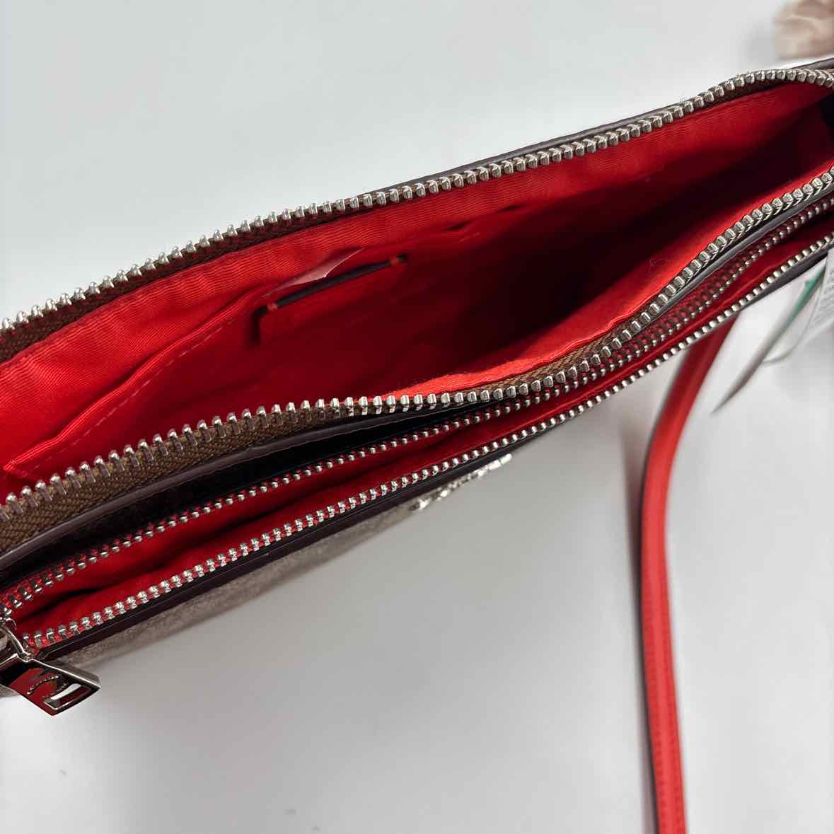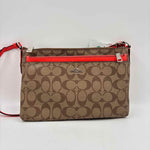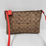 Brown Signature C, Orange Leather Crossbody, Zip Closure