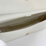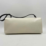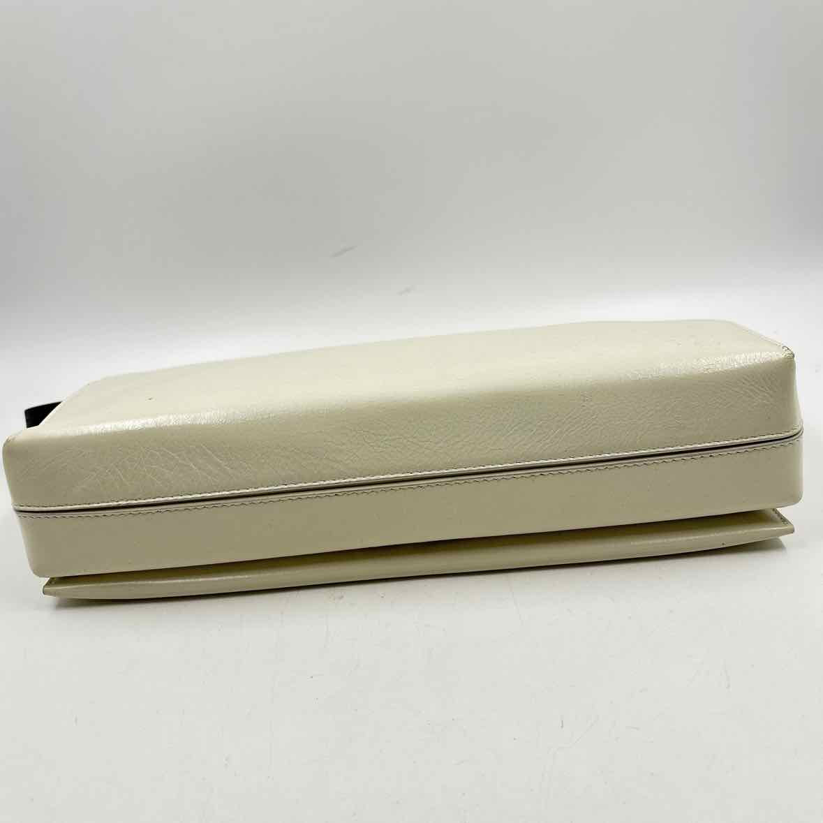 Ivory JOURNAL Goji Leather, Snap Closure, Black Strap (Slight imperfection/scratch on top, near right handle), silver sleek hardware