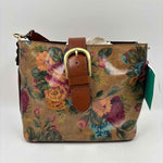 Brown Green Pink Magenta Floral Leather, IRVING BUCKET, Snap Closure