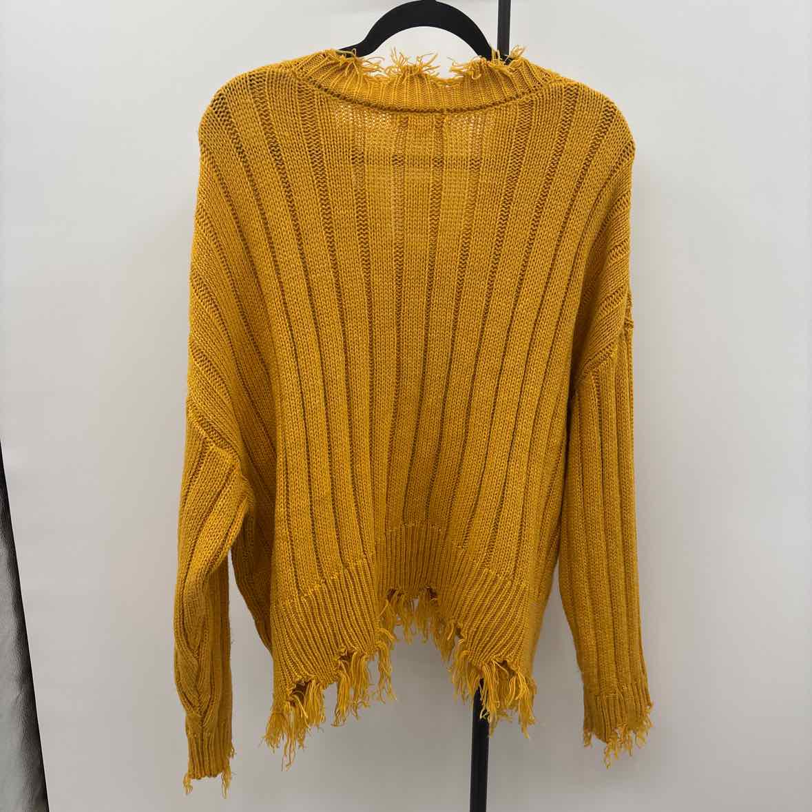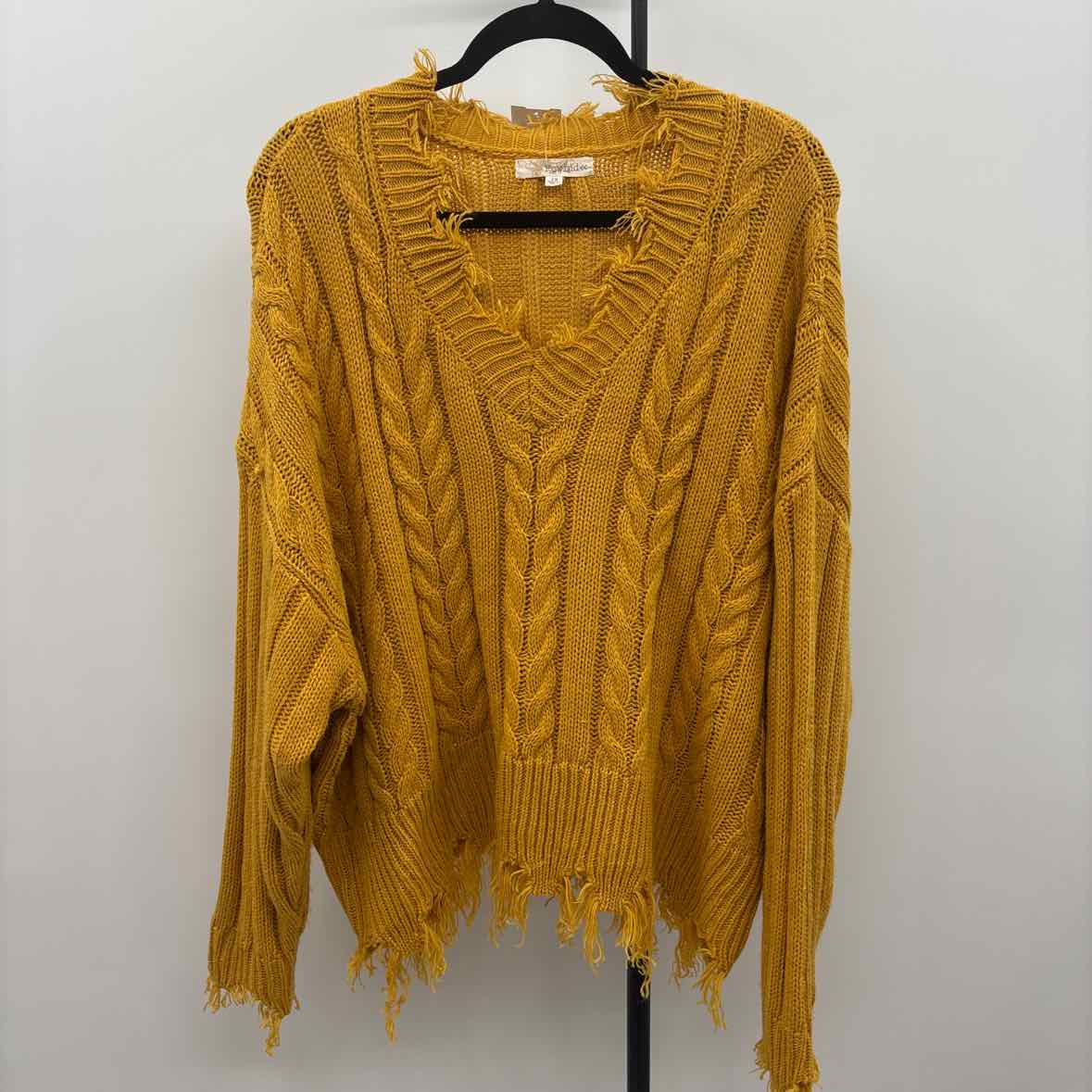 LS Distressed Mustard Yellow Cable Knit, V-Neck