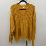 Rewind Women's 2X Mustard Yellow Cable Knit Sweater