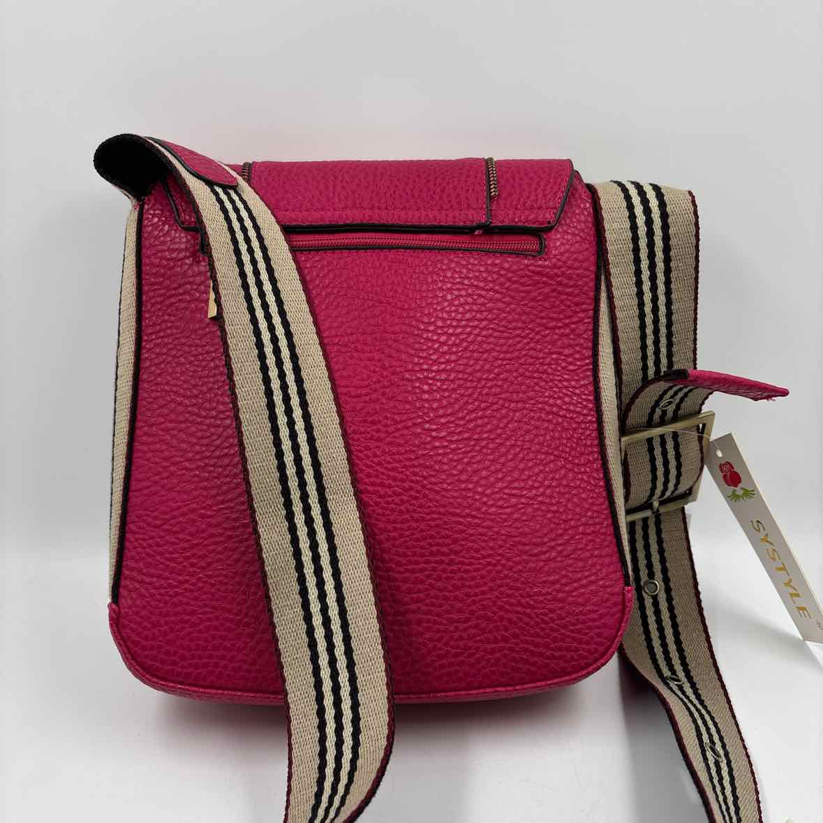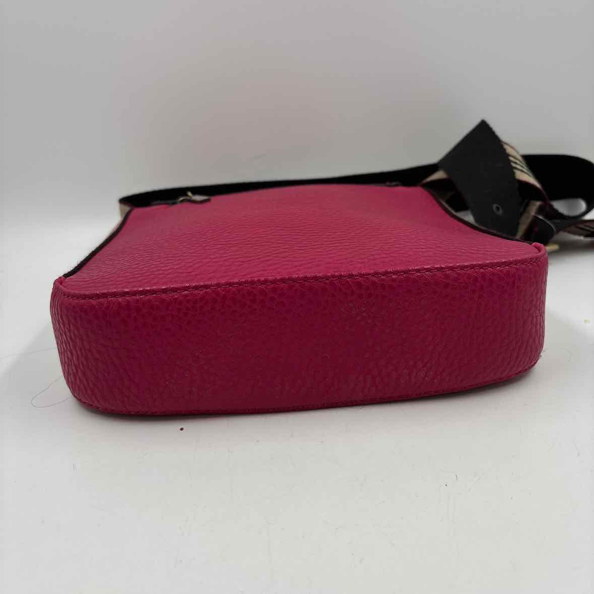 fuschia crossbody messenger bag w/ beige/black striped strap