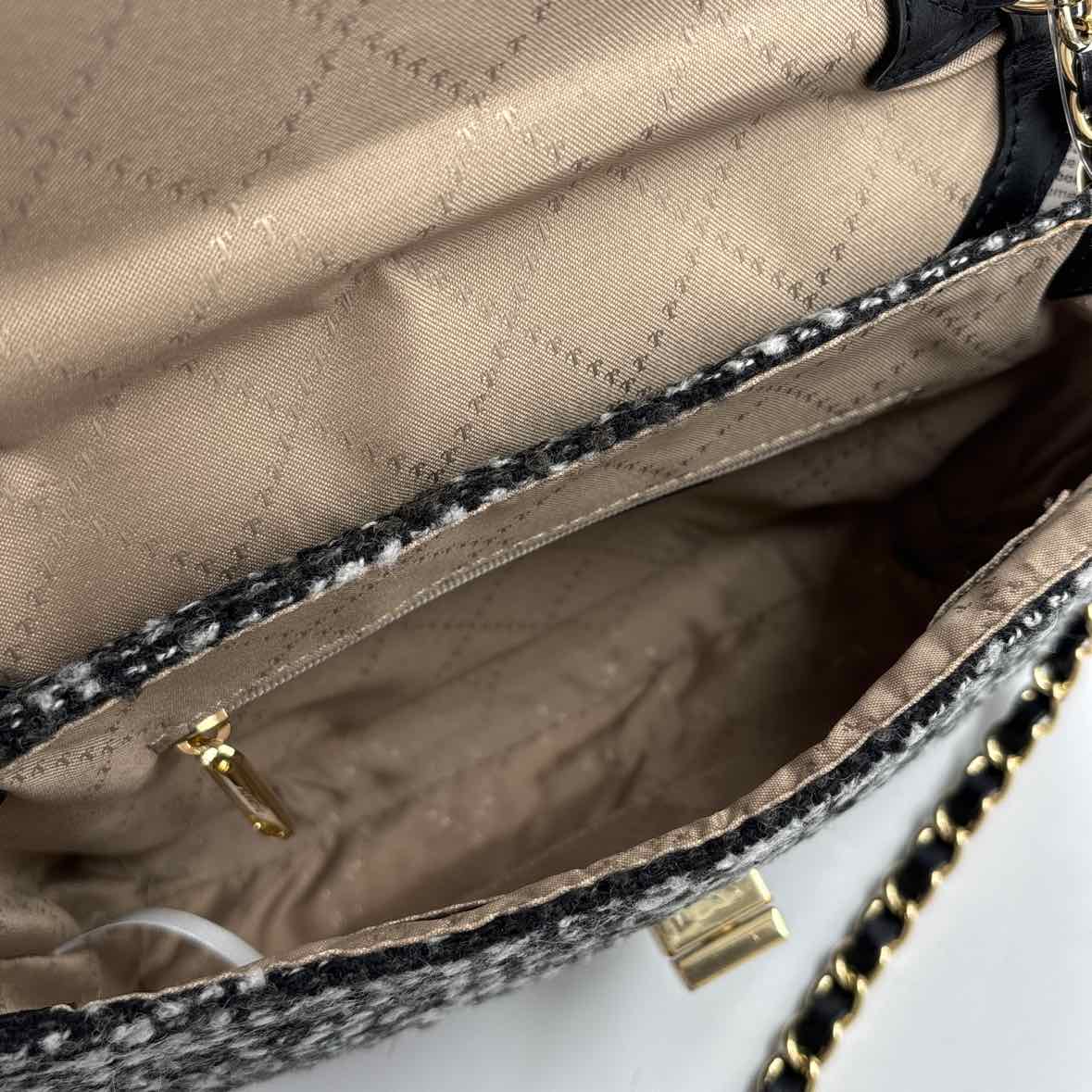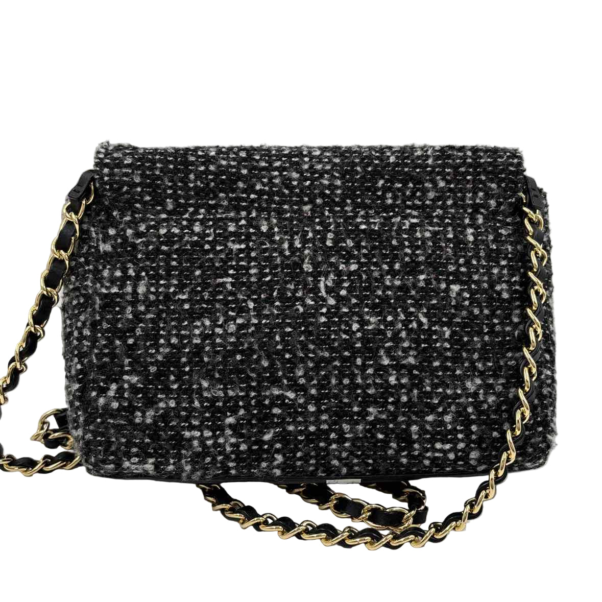 Charcoal Tweed Crossbody, Turn Lock Closure