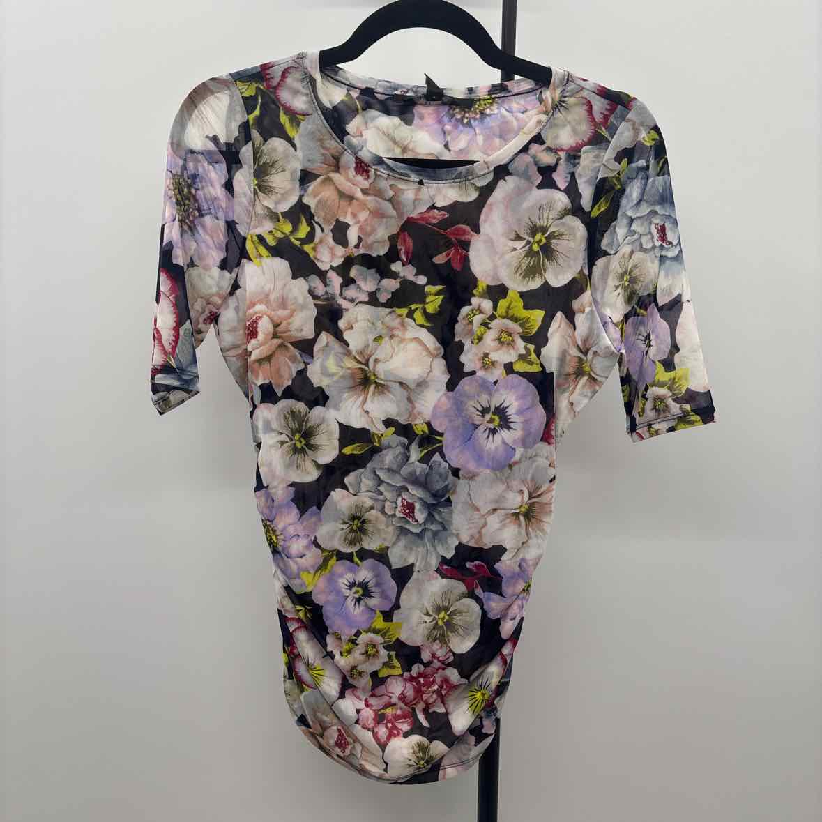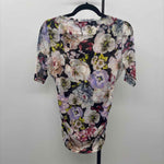 SS Black Peach Lilac Yellow Floral, Rusched Side Detail